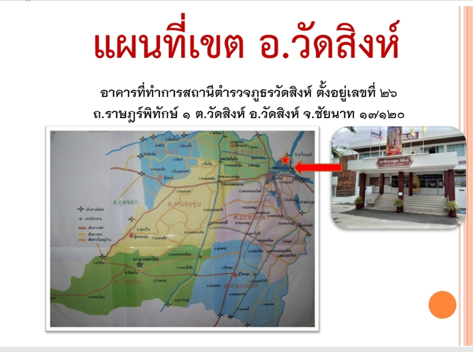 ที่อยู่ 26 ถนนราษฎร์พิทักษ์ 1 ต.วัดสิงห์ อ.วัดสิงห์ จ.ชัยนาท 17120