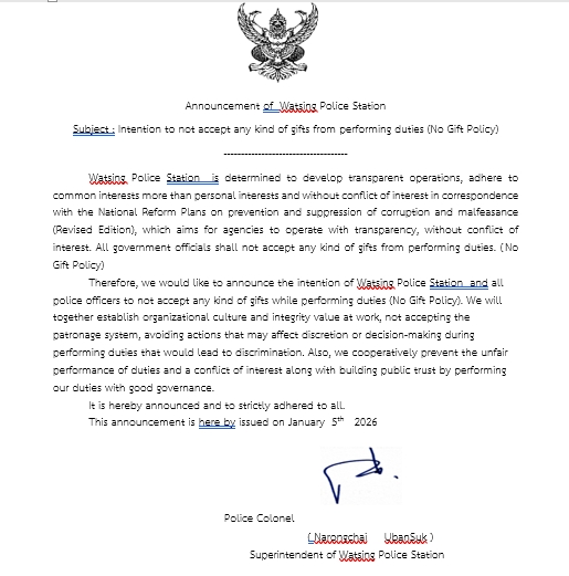 ประกาศนโยบายต่อต้านการรับสินบน ภาษาอังกฤษ