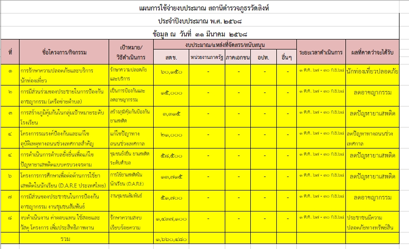 แผนการใช้จ่ายงบประมาณ ปี 2568 สภ.วัดสิงห์
