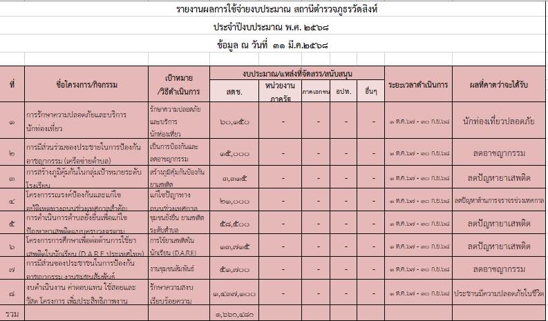 1.บันทึกรายงานผลการใช้จ่ายงบประมาณประจำปีงบประมาณ 2568 เสนอหัวหน้าสถานี สภ.วัดสิงห์ ไฟล์ PDF คลิ๊กที่นี่