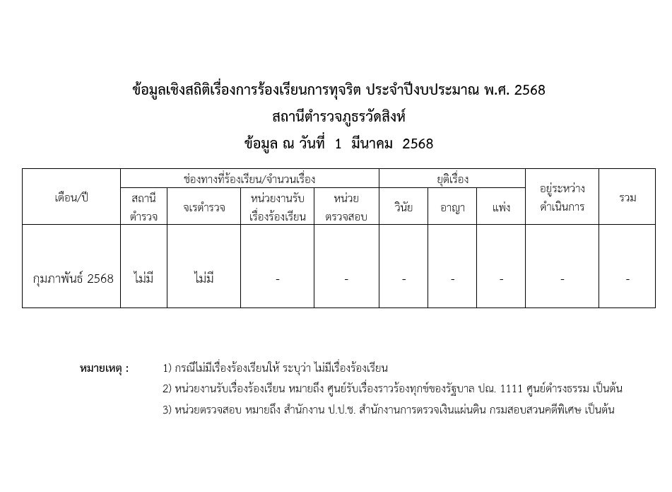 ข้อมูลสถิติเรื่องร้อยเรียนการทุจริตและประพฤติมิชอบ ประจำเดือน ก.พ.2568
