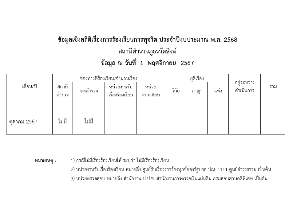 ข้อมูลสถิติเรื่องร้อยเรียนการทุจริตและประพฤติมิชอบ ประจำเดือน ต.ค.2567