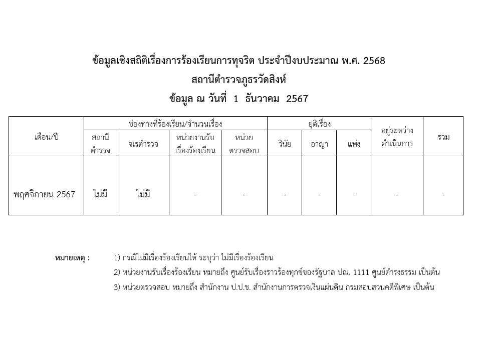 ข้อมูลสถิติเรื่องร้อยเรียนการทุจริตและประพฤติมิชอบ ประจำเดือน พ.ย.2567