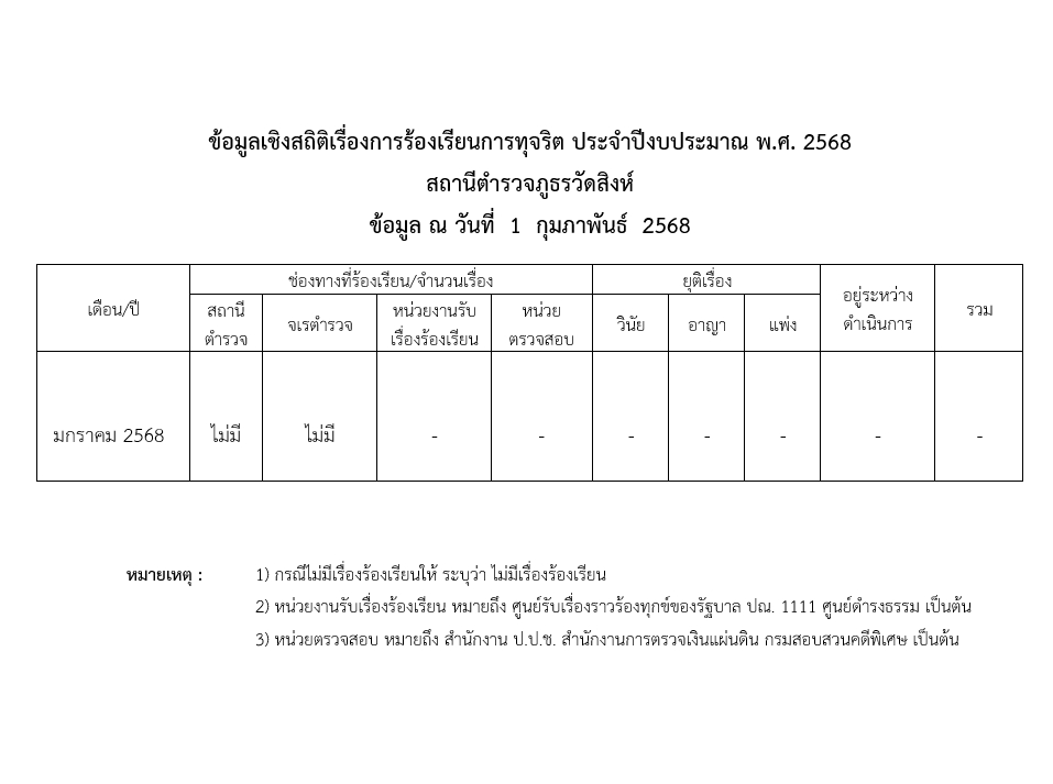 ข้อมูลสถิติเรื่องร้อยเรียนการทุจริตและประพฤติมิชอบ ประจำเดือน ม.ค.2568