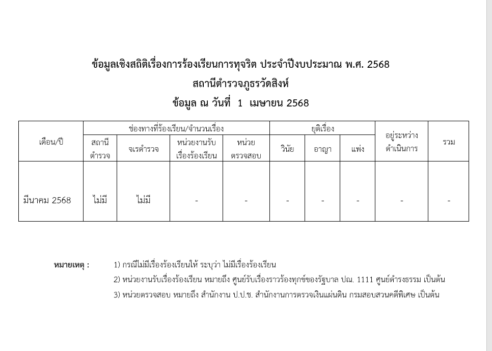 ข้อมูลสถิติเรื่องร้อยเรียนการทุจริตและประพฤติมิชอบ ประจำเดือน มี.ค.2568